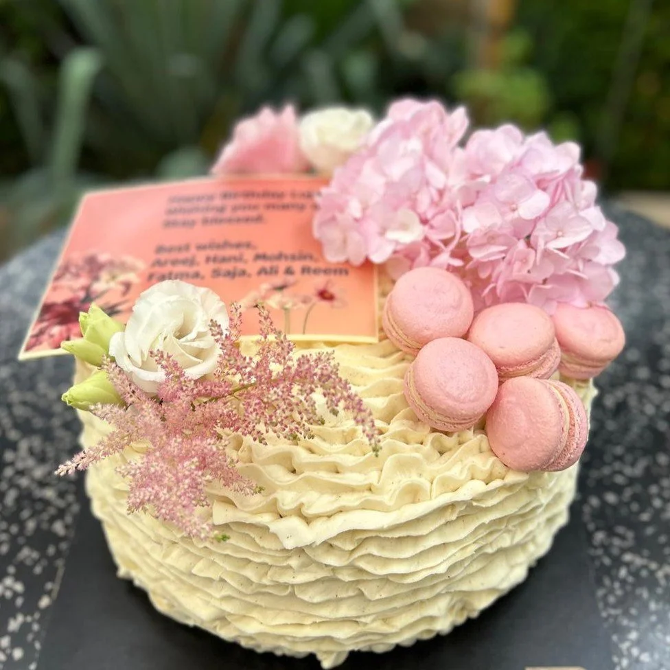 A perfect balance of bold and bright. This cake combines layers of rich dark chocolate mousse and smooth chocolate cream with a vibrant mango-passion fruit gel for a tropical twist. All set on a chocolate biscuit base for just the right texture. Elegant, flavorful, and ideal for any celebration.